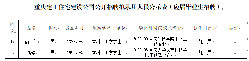 附件:伟德体育住宅建设有限公司2022年公开招聘拟录用人员公示表