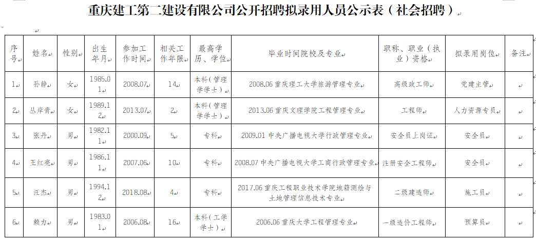 附件:伟德体育第二建设有限公司2022年公开招聘拟录用人员公示表