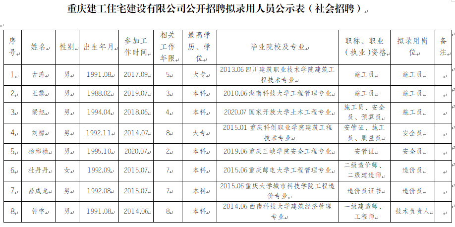 附件:伟德体育住宅建设有限公司2022年公开招聘拟录用人员公示表