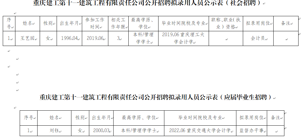 附件:伟德体育第十一建筑工程有限责任公司2022年公开招聘拟录用人员公示表