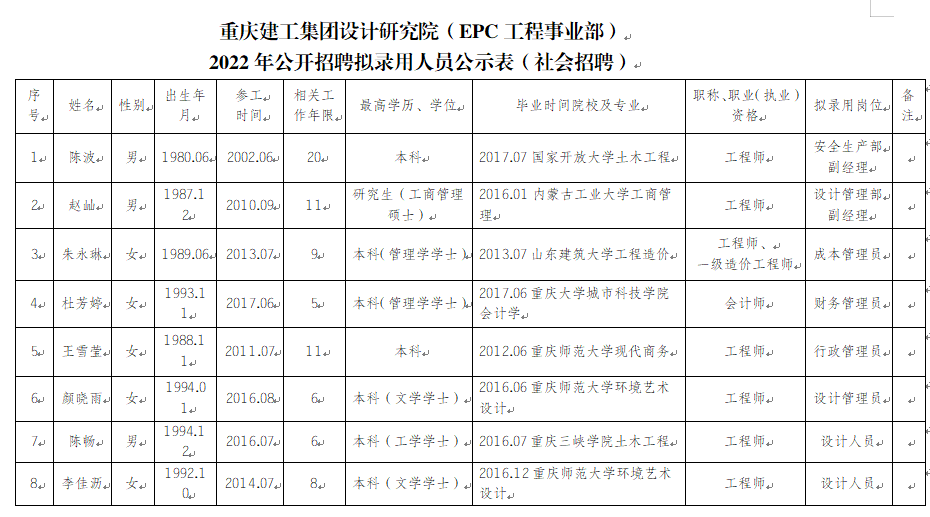 附件:伟德体育集团设计研究院(EPC工程事业部)2022年公开招聘拟录用人员公示表
