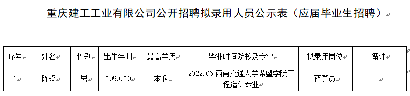 附件:伟德体育工业有限公司2022年公开招聘拟聘人员公示表