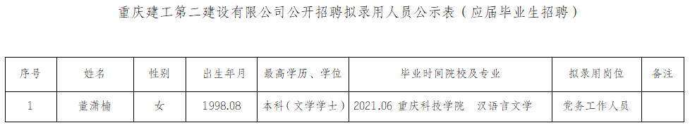 附件:伟德体育第二建设有限公司2022年公开招聘拟聘人员公示表
