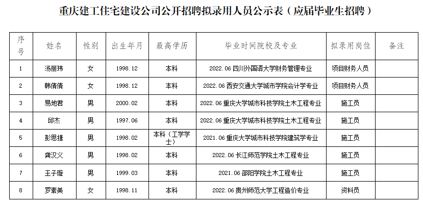 附件:伟德体育住宅建设有限公司2022年公开招聘拟录用人员公示表