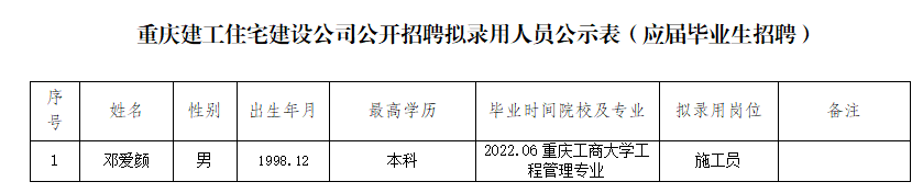 附件:伟德体育住宅建设有限公司2022年公开招聘拟聘人员公示表