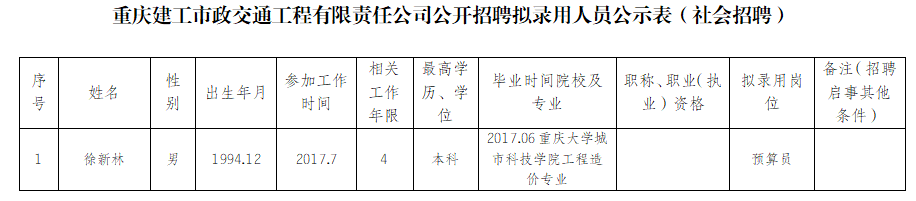 附件:伟德体育市政交通工程有限责任公司2022年招聘拟录用人员公示表