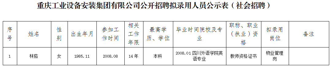 附件:重庆工业设备安装集团有限公司2022年公开招聘拟聘人员公示表