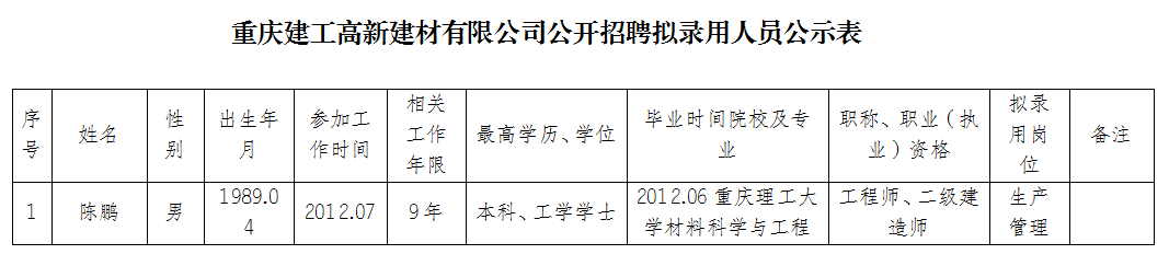 附件:伟德体育高新建材有限公司2021年公开招聘拟聘人员公示表