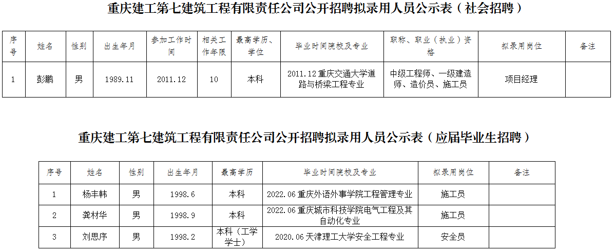 附件:伟德体育第七建筑工程有限责任公司2021年公开招聘拟聘人员公示表