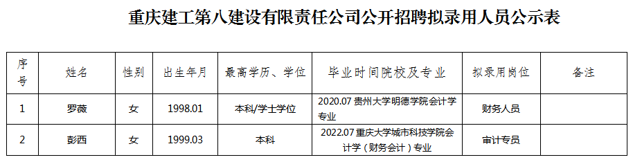 附件:伟德体育第八建设有限责任公司2021年公开招聘拟录用人员公示表