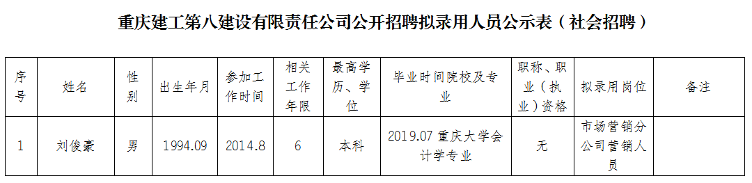 附件:伟德体育第八建设有限责任公司2021年公开招聘拟聘人员公示表