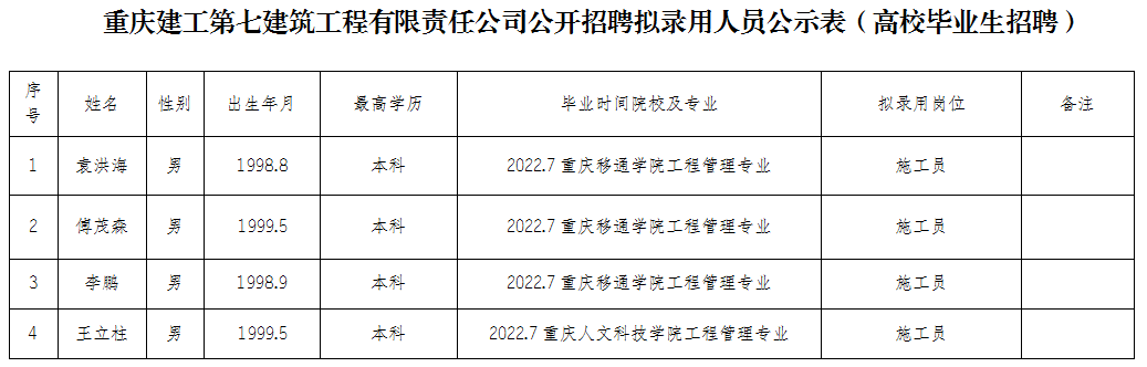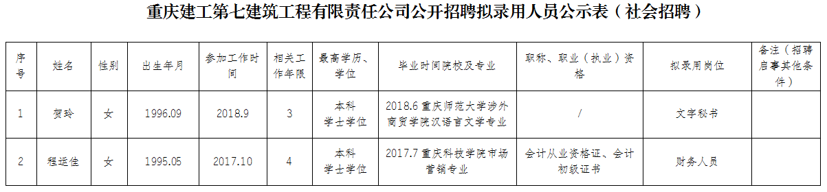 附件:伟德体育第七建筑工程有限责任公司2021年公开招聘拟录用人员公示表