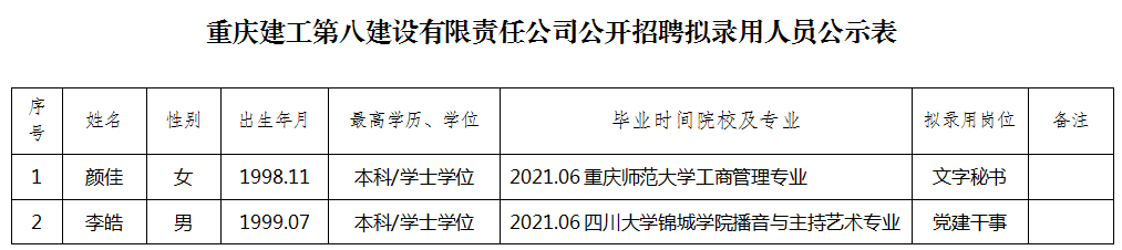 附件:伟德体育第八建设有限责任公司2021年公开招聘拟聘人员公示表