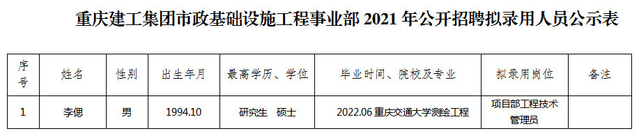 附件:伟德体育集团市政基础设施工程事业部2021年公开招聘拟录用人员公示表