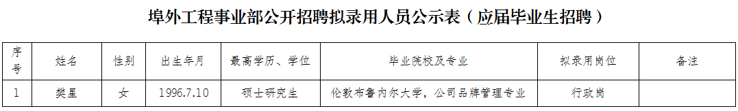 附件:伟德体育集团埠外工程事业部2021年公开招聘拟录用人员公示表