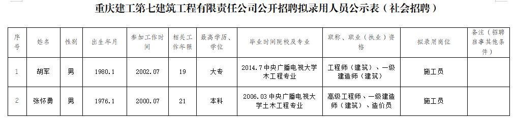 附件:伟德体育第七建筑工程有限责任公司2021年公开招聘拟录用人员公示表