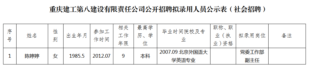 附件:伟德体育第八建设有限责任公司2021年公开招聘拟录用人员公示表