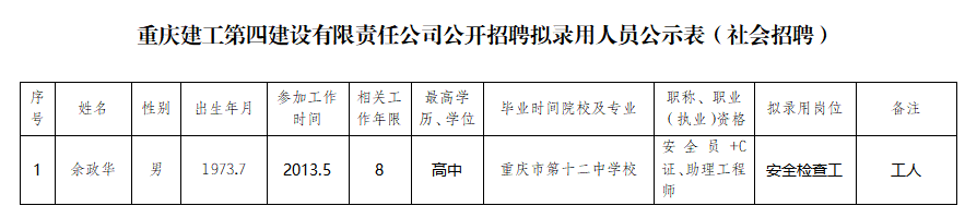 附件:伟德体育第四建设有限责任公司2021年公开招聘拟录用人员公示表