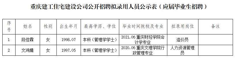 附件:伟德体育住宅建设有限公司2021年公开招聘拟录用人员公示表