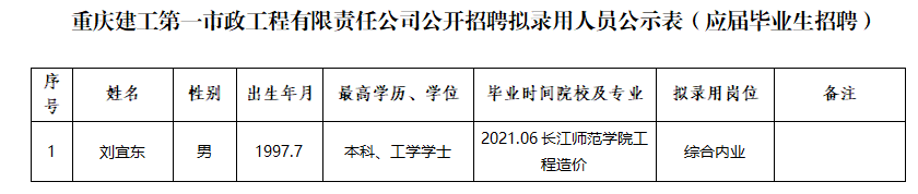 附件:伟德体育第一市政工程有限责任公司2021年公开招聘拟录用人员公示表