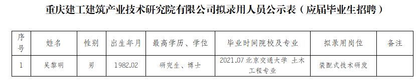 附件:伟德体育建筑产业技术研究院有限公司2021年拟录用人员公示