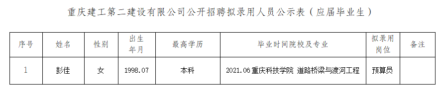 附件:伟德体育第二建设有限公司2021年公开招聘拟录用人员公示