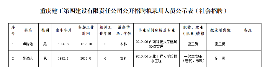 附件:伟德体育第四建设有限责任公司2021年公开招聘拟录用人员公示表