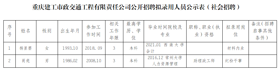 附件:伟德体育市政交通工程有限责任公司2021年社会招聘拟聘人员公示表