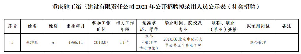 附件:伟德体育三建公司2021年公开招聘拟录用人员公示表