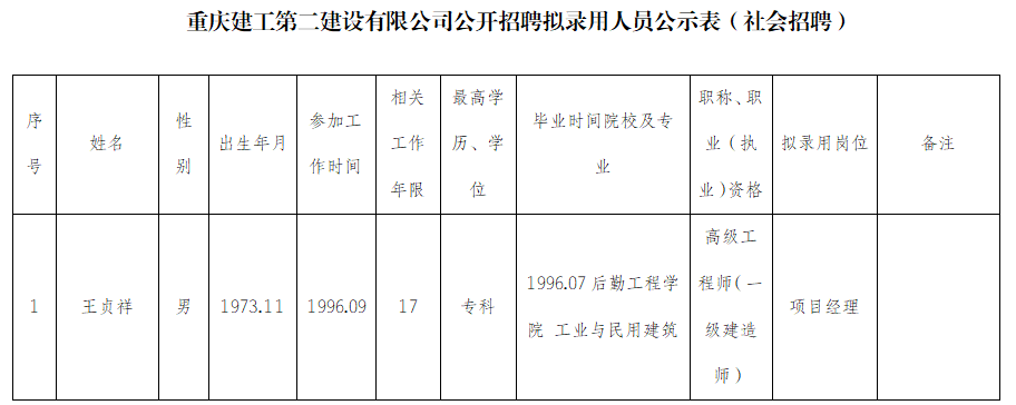 附件:伟德体育第二建设有限公司2021年公开招聘拟聘人员公示表