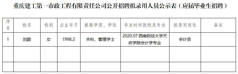 附件:伟德体育第一市政工程有限责任公司2021年公开招聘拟录用人员公示表