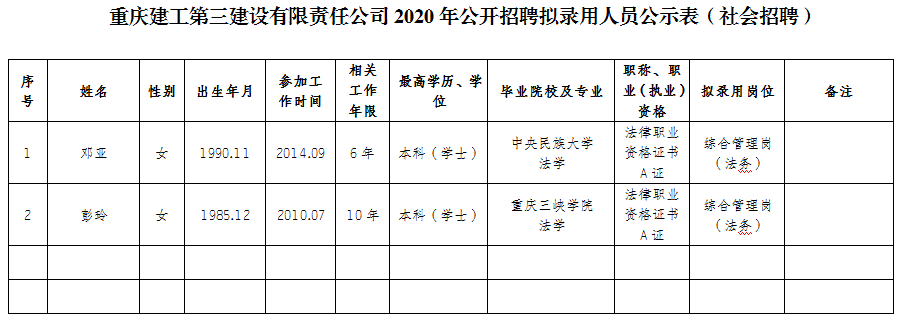 附件:伟德体育三建公司2020年公开招聘拟聘人员公示表