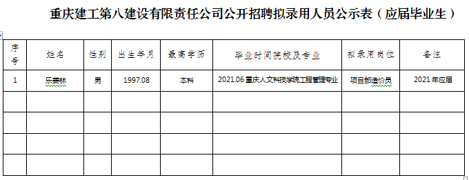 附件:伟德体育第八建设有限责任公司2020年公开招聘拟聘人员公示表