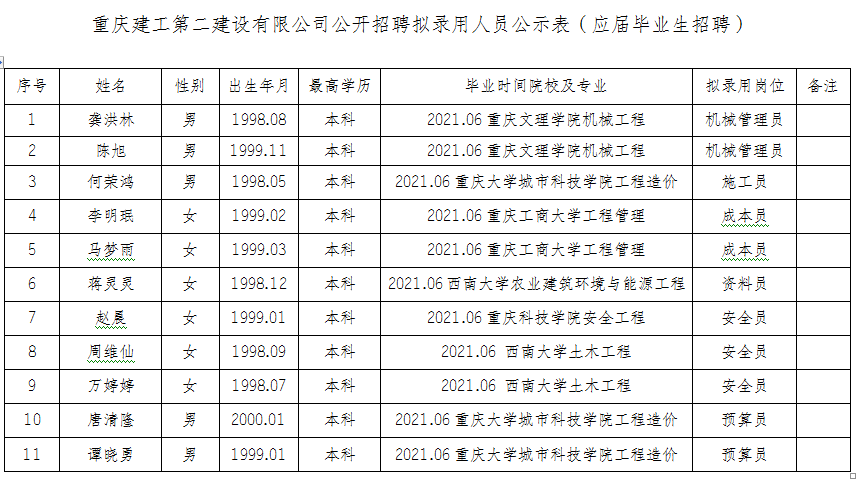 附件:伟德体育第二建设有限公司2020年公开招聘拟聘人员公示表
