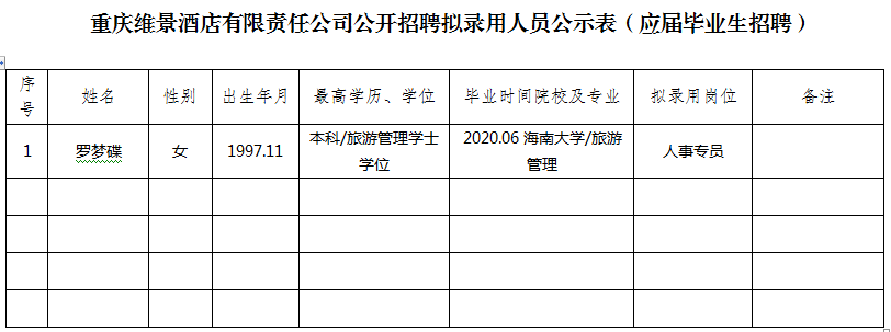 附件:重庆维景酒店公司2020年公开招聘拟聘人员公示表