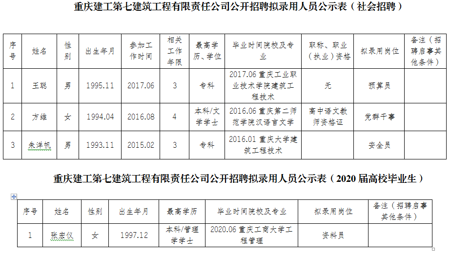 附件:伟德体育第七建筑工程有限责任公司2020年公开招聘拟聘人员公示表