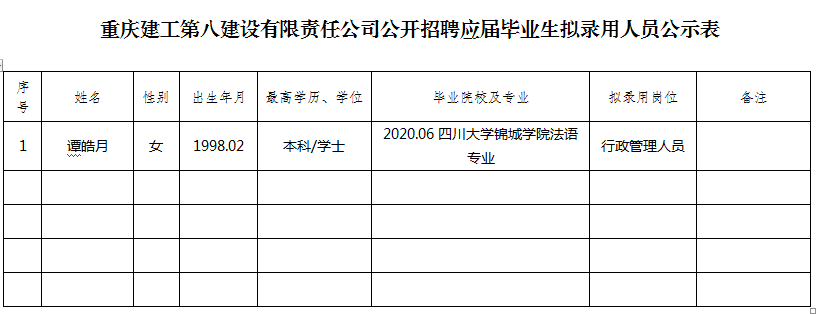 附件:伟德体育第八建设有限责任公司2020年公开招聘拟聘人员公示表