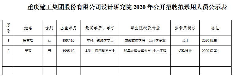 附件:伟德体育集团股份有限公司设计研究院2020年公开招聘拟聘人员公示表
