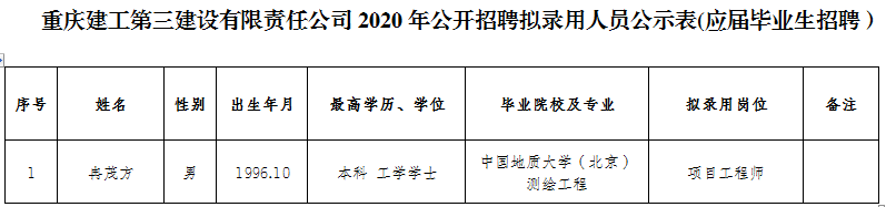 附件:伟德体育三建公司2020年公开招聘拟聘人员公示表