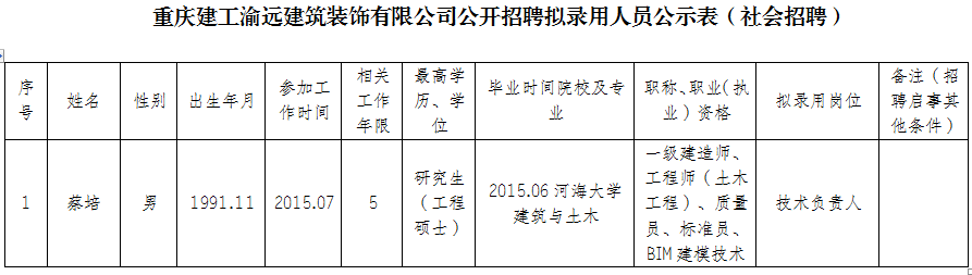 附件:伟德体育渝远建筑装饰有限公司2020年公开招聘拟聘人员公示表
