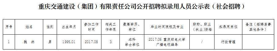 附件:重庆交通建设(集团)有限责任公司2020年公开招聘拟聘人员公示表