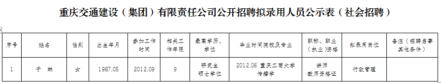 附件:重庆交通建设(集团)有限责任公司2020年公开招聘拟聘人员公示表