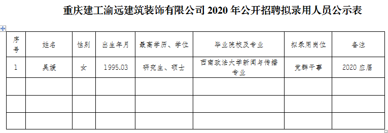 附件:伟德体育渝远建筑装饰有限公司2020年公开招聘拟聘人员公示表