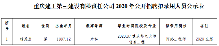 附件:伟德体育三建公司2020年公开招聘拟录用人员公示表