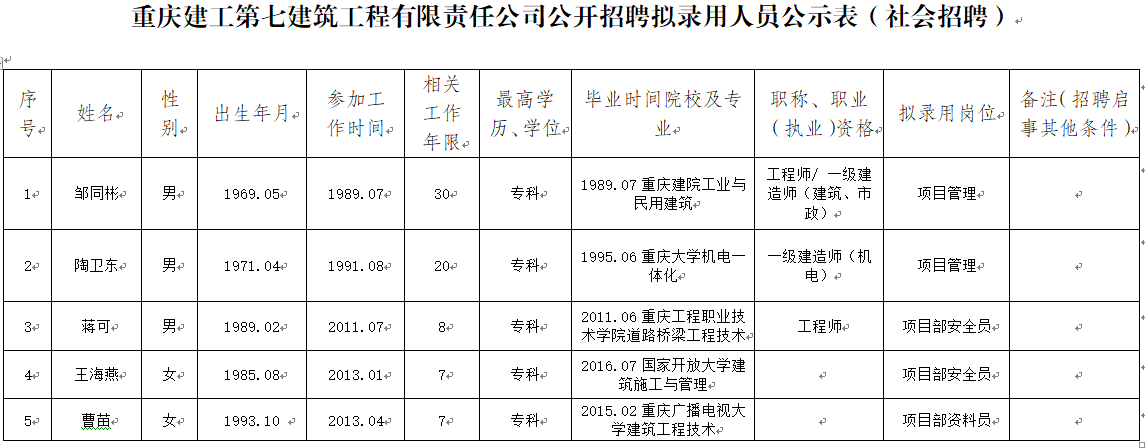 附件:伟德体育第七建筑工程有限责任公司2020年公开招聘拟聘人员公示表