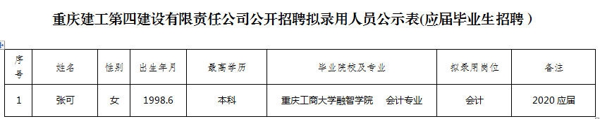 附件:伟德体育第四建设有限责任公司2020年公开招聘拟聘人员公示表