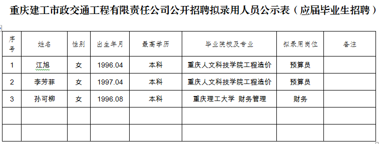 附件:伟德体育市政交通工程有限责任公司2020年校园招聘拟聘人员公示表