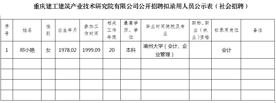 附件:伟德体育建筑产业技术研究院有限公司2020年公开招聘拟录人员公示表