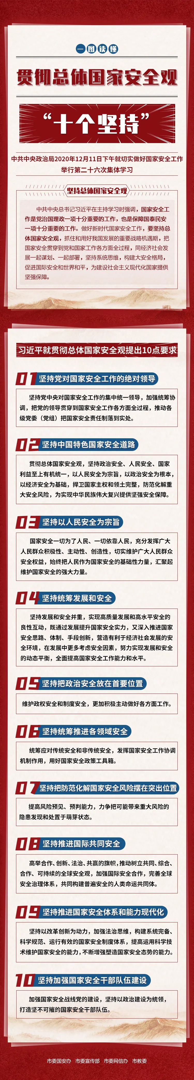 习近平总书记告诉我们:国家安全工作是党治国理政一项十分重要的工作,也是保障国泰民安一项十分重要的工作。