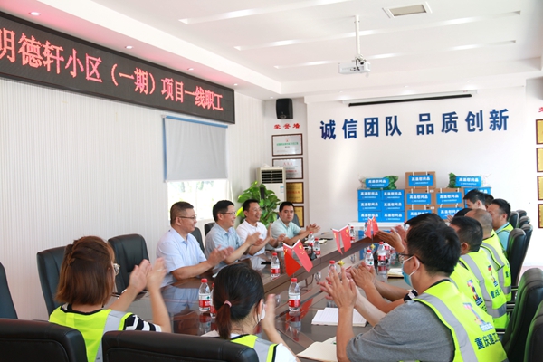 8月3日,该司党委书记、董事长杨帆前往明德轩小区(一期)项目部,看望慰问坚守在高温下的一线管理人员和工人们,为他们送去清凉慰问品,并与项目人员一一握手,表示感谢。走进项目办公区,杨帆详细了解项目工程进度、安全文明施工、疫情防控等方面工作,并叮嘱项目管理人员要做好防暑降温和疫情防控工作,合理安排时间,确保项目职工平安度夏。慰问时,杨帆对项目部下一步工作提出三点希望:一是打造业主满意的工程,项目部要科学组织、精细安排,打造出过程满意、成果满意的优质工程。二是项目部要创造效益,加强项目成本管控,促进精益化管理提升,打造最低价中标成本示范项目。三是希望项目员工成长成才,项目要发扬好公司“师带徒”优良传统,量身定制成长计划,培养一批骨干型人才。